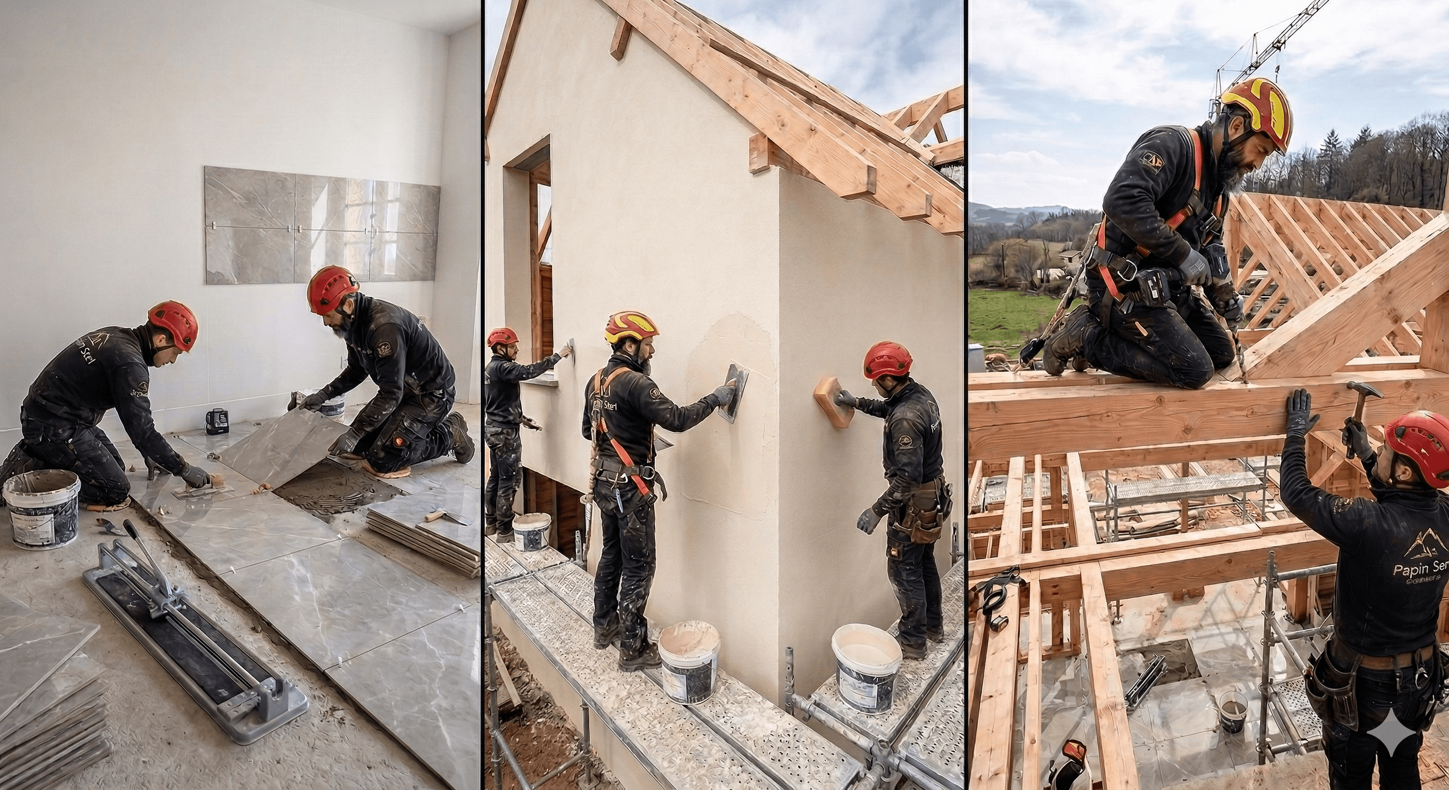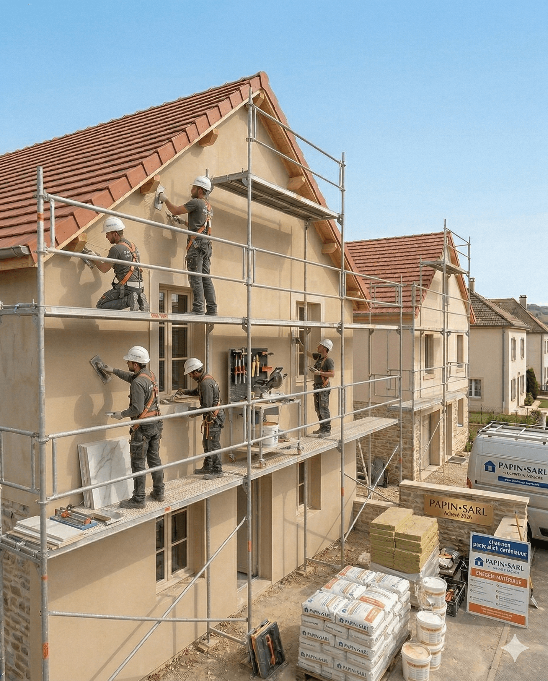Chez PAPIN SARL, votre artisan de confiance en charpente, enduit extérieur et placo, basé à Toulouse et intervenant sur toute l'Occitanie. Forts de plus de 30 ans de métier sur des maisons comme la vôtre, on est fiers de faire un travail soigné et de tenir notre parole à chaque chantier. Notre engagement, c'est simple : on vient voir avant de chiffrer, on vous explique ce qu'on trouve, et on s'en va quand c'est vraiment fini. Pas de sous-traitance, pas de surprise sur la facture. Construisons ensemble une maison qui tient dans le temps.